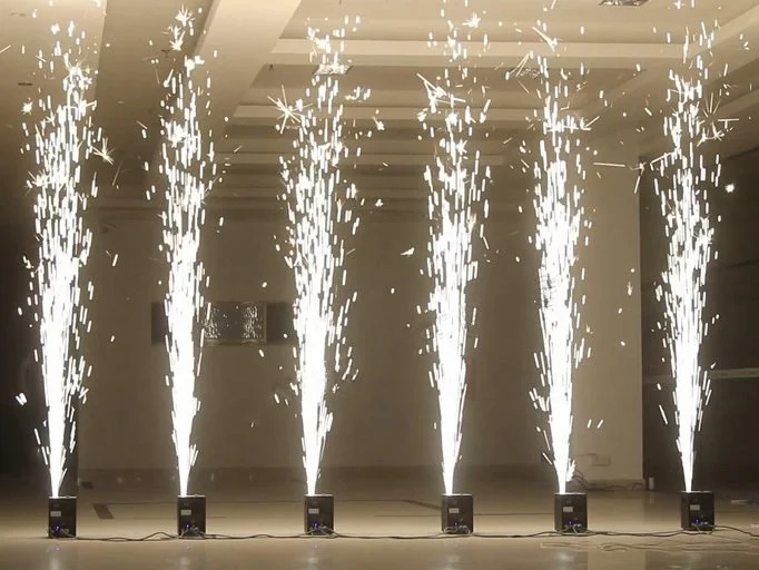 Cold Spark Machines do not use flammable elements to create a sparkling, firework-esque display. Instead, it uses a mixture of small grains made up of zirconium and titanium. Those grains are loaded into a small rectangular machine using small pouches with a safety interlock system.